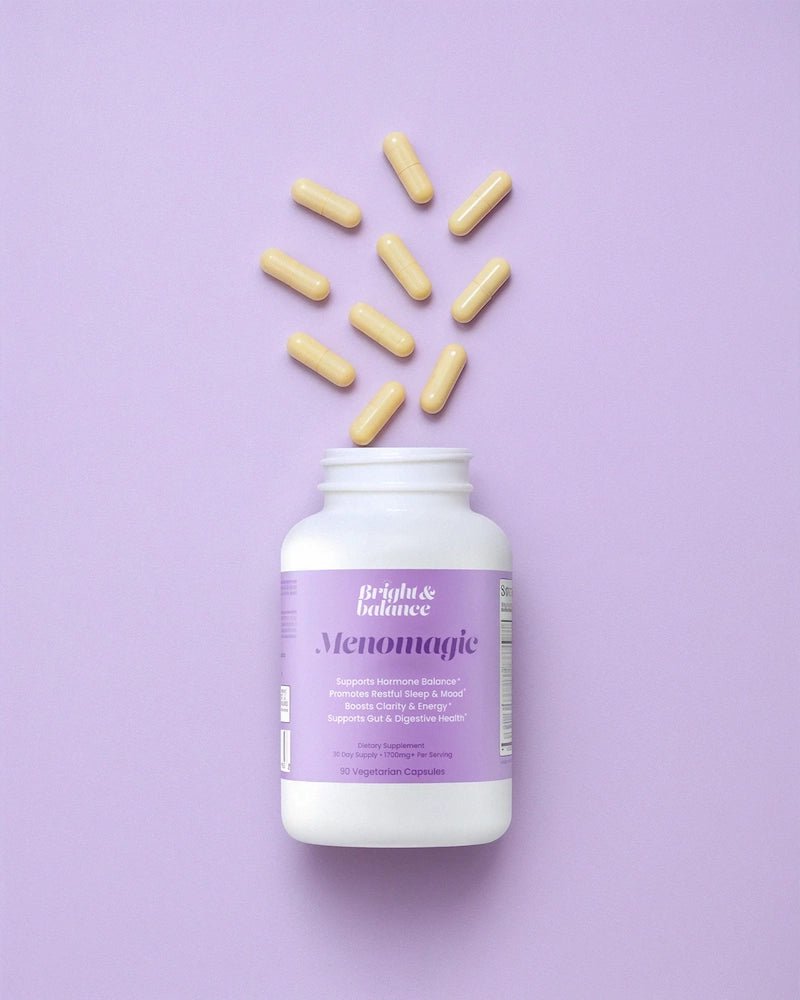 Menomagic is a multi-symptom menopause supplement that supports energy, sleep, mood, digestion, and hormonal balance—all in one formula.